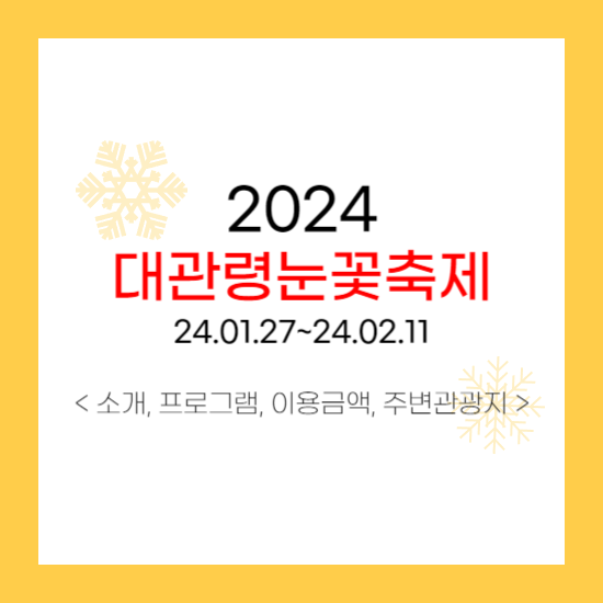 대한민국 겨울의 중심 '대관령'에서 매년 1월이 되면 '대관령눈꽃축제'가 개최됩니다. 예로부터 하늘아래 첫 동네라는 대관령은 전국에서 가장 먼저 서리가 내렸다고하며, 1993년 1월, 대관령면의 지역 청년들이 자발적으로 모여 대관령을 알리기 위해 시작한 것이 지금은 대한민국의 대표 겨울축제로 발전했습니다. 2024년 대관령눈꽃축제는 24년 1월 27일부터 24년 2월 11일까지 열리게 됩니다.