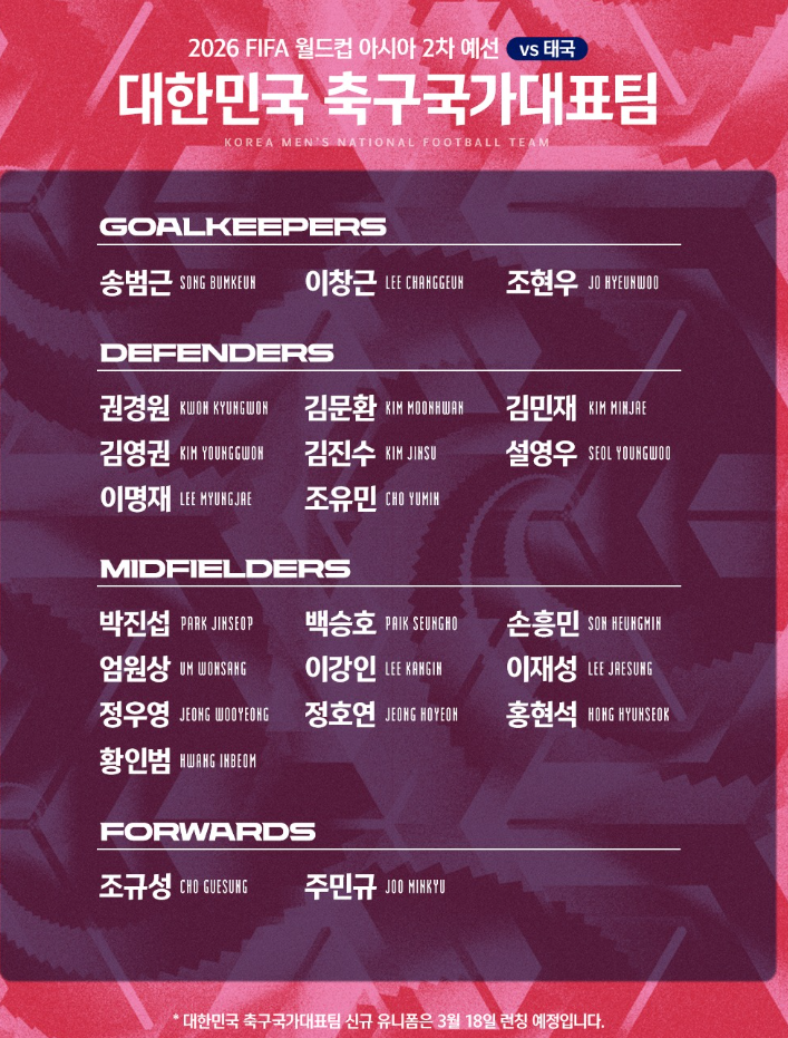 ✅ 2026 북중미 월드컵 2차 예선 대표팀 명단